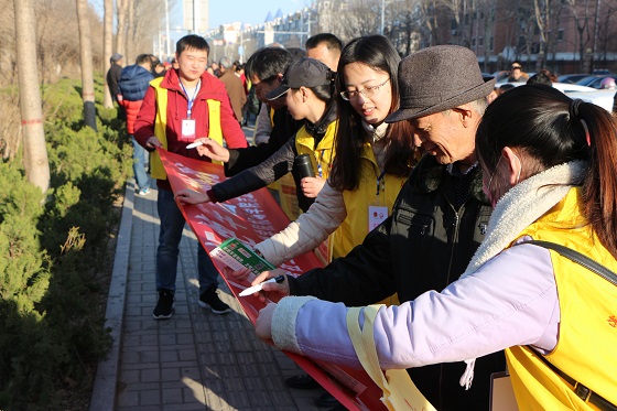 3月6日,由我院学子和滨州众智社工作服务中心联合发起“关爱环卫工人,拒绝车窗抛物”学雷锋志愿服务活动在滨州银座中海店广场顺利开展