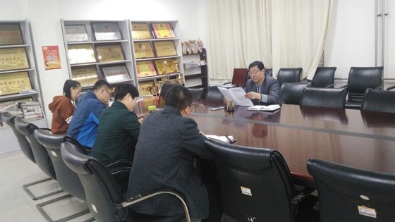 12月12日上午,365上市公司党总支理论学习中心组在工科楼1-109会议室专题学习了中国共产党滨州学院第三次党代会精神,并就十九大精神的学习体会进行了交流。党总支书记董克勇主持会议。