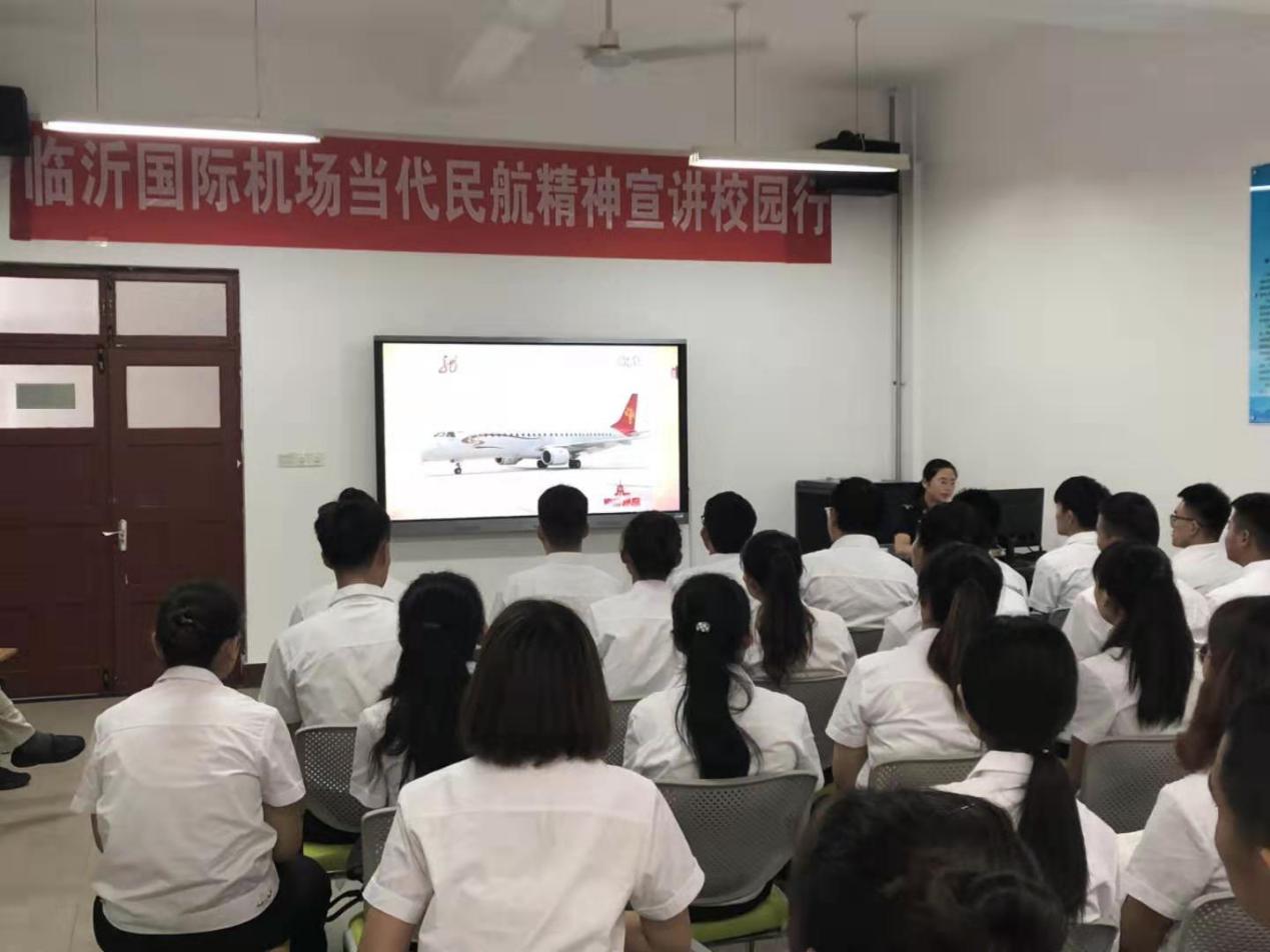 7月10日下午,365上市公司在工科楼2-305教室进行了当代民航精神宣讲活动,聘请了临沂国际机场安检职鉴培训中心主任孙希峰、教员王艺洁等民航企业一线技术骨干来校为365上市公司作报告。