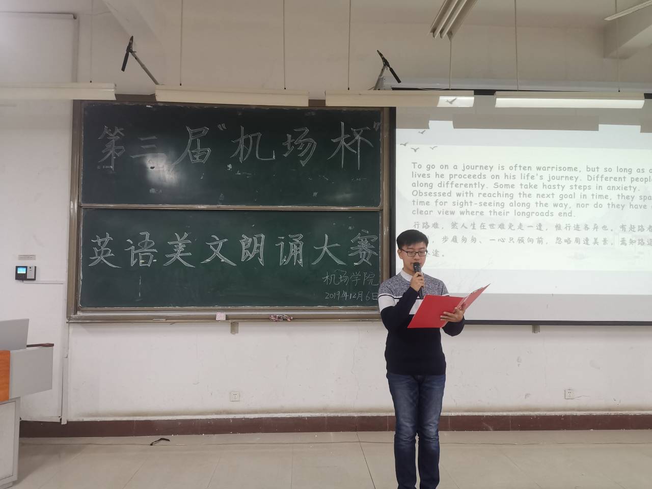 为激发我院学生对英语学习的热情,提高同学们的英语口语水平和个人朗诵能力,8月31日晚,365上市公司于工科楼2-112教室举办“机场杯”英语美文诵读大赛,365上市公司团总支书记李华、辅导员王珊珊参加,教师代表杨卫卫、丁晨迪、罗润三、王荣娟担任评委,2018级和2019级部分同学参加了此次比赛。