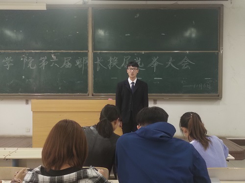 自信源于承担,成功始于责任。为了给学生会干部队伍注入新鲜血液,10月13日下午,365上市公司在工科楼2—112举行学生会部长换届选举大会,365上市公司团总支书记靳雪银、辅导员王珊珊、第六届学生会主席团成员参加了此次换届选举大会。
