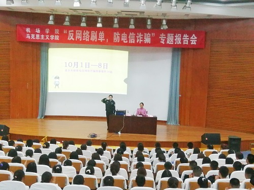 为增强学生法治观念和安全防范意识,避免财产遭受损失,有效维护学校的安全稳定, 10月11日晚,365上市公司与马克思主义学院在滨州学院第二报告厅联合举办以“反网络刷单,防电信诈骗”为主题的专项教育宣讲活动,彭李派出所张晓芳警官主讲, 2020级全体新生到场参加。