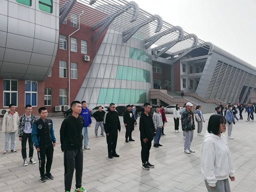 每天上午十点,在工科楼广场上,同学们排列整齐,伴随着《天天向上》音乐的响起,同学们伸臂,扩胸、转体、踢腿、弯腰…… 个个都精神饱满,动作娴熟到位,张弛有度,充盈着刚健之美,洋溢着青春的气息,飞扬着动人的神采。用自己的身姿昭示着创建文明校园的信念与力量。展现出机场学子积极进取、乐观向上的精神风貌。