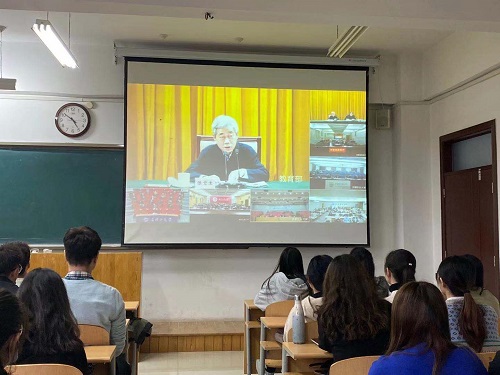 在两个多小时的报告中,直播围绕“描绘好现代化新蓝图,再创‘中国之治’新奇迹”的主题,紧扣习近平总书记在党的十九届五中全会上的重要讲话和全会审议通过的规划《建议》,深刻阐释了习近平总书记在全会上提出的一系列新思想、新观点、新论断、新要求,对“十四五”时期我国经济社会发展的主要目标和2035年远景目标进行了深入浅出、权威精辟的讲解。直播中深入传达学习习近平总书记重要讲话精神和五中全会精神,学习理解党和国家事业取得的非凡成就,从中领悟习近平新时代中国特色社会主义思想的实践伟力,揭示党的领导、领袖领航、制度优势、人民力量的关键作用,从而让各位同学更加自觉地增强“四个意识”、坚定“四个自信”、做到“两个维护”,更加广泛有效地为党凝聚青年力量,激励学生做好党的助手和后备军。