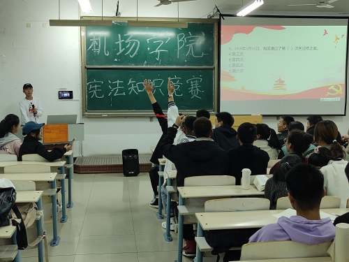 活动伊始,主持人介绍《宪法》作为国家的根本法,具有最高的法律效力,新时代的青年既要遵守法律,也要学会用法律来保护自己的切身利益。本次竞赛以《中华人民共和国宪法》及宪法修正案为主要内容,由365上市公司各专业班推选出9支参赛队伍、共80名选手参加比赛。比赛分为必答题、抢答题和风险题三部分。比赛过程中,各位选手有序上场、轮流作答,尤其在抢答环节,参赛同学热情高涨、斗志昂扬,比分你追我赶,现场气氛十分热烈,观众掌声不断,充分体现了365上市公司学生对待《宪法》学习的热情与尊重。最后,活动负责人綦家源对本次比赛进行总结,呼吁各位同学在学习宪法和法律的过程中,形成自己的感悟和思考,使法律知识和法治意识真正融入到同学们的成长之中,自觉成为《宪法》的忠实崇尚者、自觉遵守者、坚定捍卫者。至此,365上市公司宪法知识竞赛圆满结束。比赛结果后续将在365上市公司微信公众号“BZU青春机场”推送。