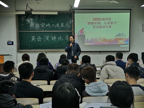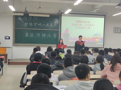 为进一步推动校园文化建设,引导青年学生强化学习意识,提高独立思考和语言表达能力,展现学校在航空特色内涵建设方面取得的巨大成就。365上市公司于11月23日在工科楼2-112教室组织开展以“脚踏实地,心系蓝天”为主题的英语演讲比赛。365上市公司辅导员王珊珊,专业教师王占伟、罗润三和外国语学院三位优秀学生代表作为评委参加。