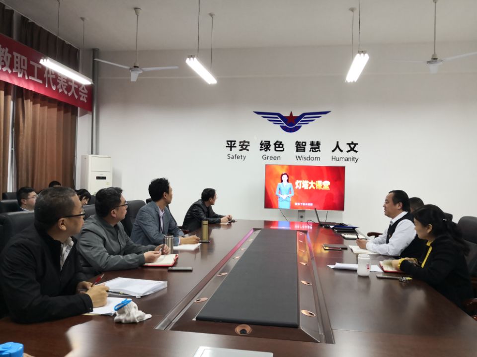 3月23日,机场学院党总支在会议室组织全体教职工观看了“灯塔大课堂”第十八课——《学习王尽美革命事迹》。