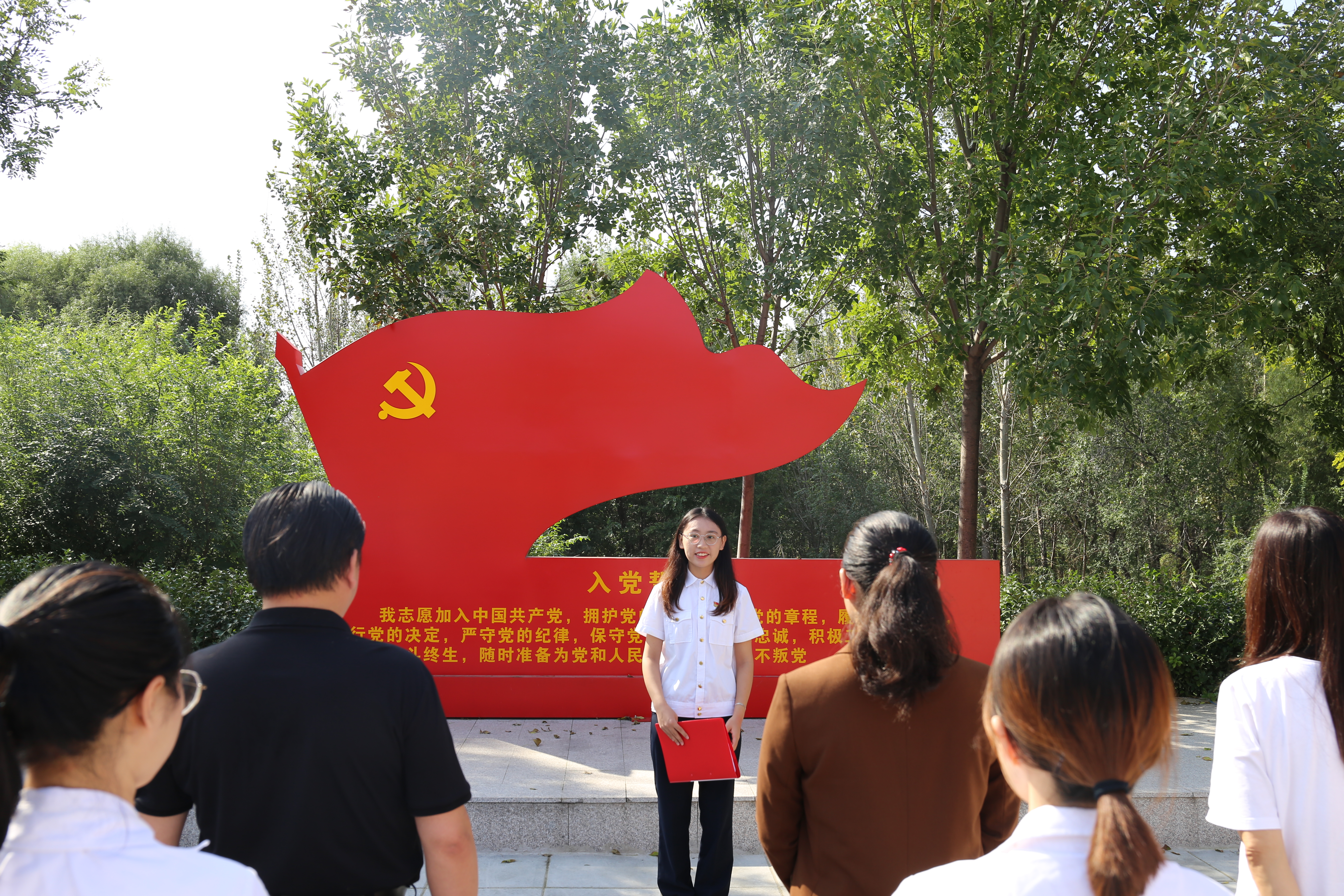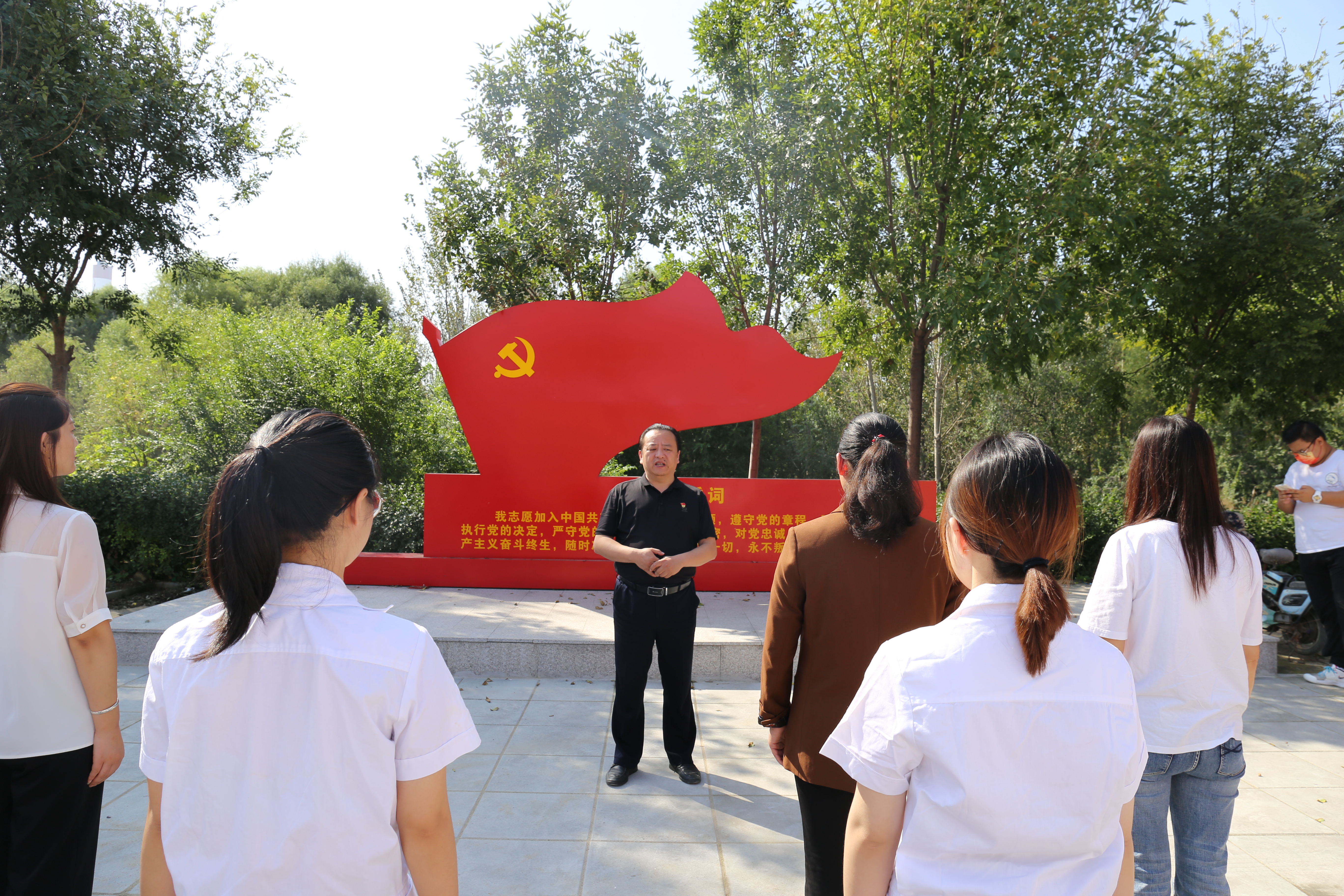 活动最后,全体党员在党总支书记靳雪银的带领下重温入党誓词,党员们接受了一次深刻的党史学习教育和心灵洗礼。