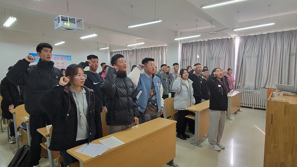 本次专题组织生活会在各团员激情澎湃的团歌声中正式拉开序幕。团支部书记汇报本团支部今年开展党史学习,特别是学习习近平总书记“七一”重要讲话精神情况和组织生活会准备情况,并结合团支部工作和个人实际交流体会认识。随后,团支部委员、其他团员依次发言,对本学年的个人得失进行深刻剖析,其他团员对其进行评议,肯定成绩、指出不足。紧接着,会议进入下一议程——先进性民主测评并公布测评结果。各团支部班主任进行点评讲话,一方面对本次组织生活会的有效开展进行赞扬,另一方面也对同学们提出“青春逢盛世、奋进正当时”的殷切期望。最后,全体团员重温入团誓词,团员们铿锵有力的声音、坚定勇毅的目光传达出了他们身为团员们的自豪与骄傲!