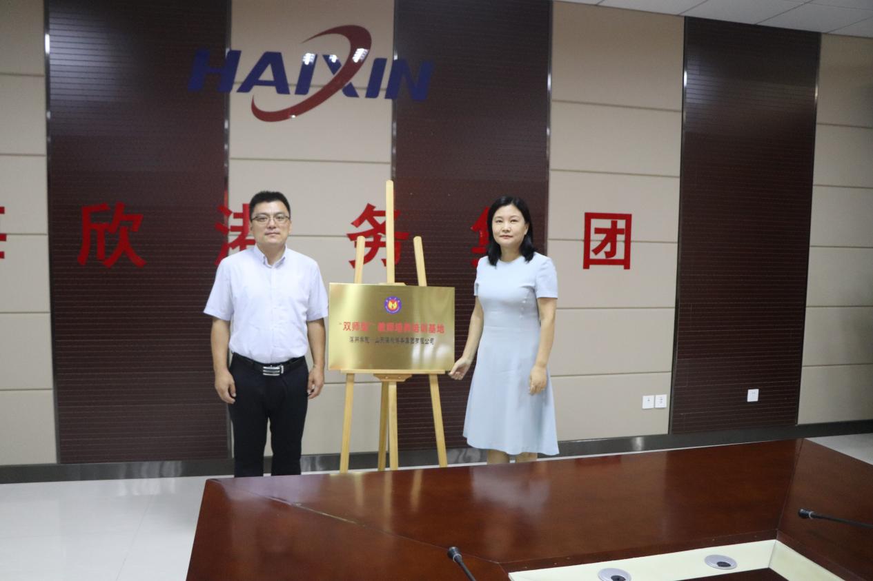 8月12日上午,365上市公司“双师型”教师培养培训基地挂牌仪式在山东海欣港务集团有限公司隆重举行。我院党总支书记张健、院长韩春艳、副院长李永,东营海欣能源科技人力资源部部长郭政、副部长孙孟媛,山东海欣港务集团总经理助理王振山等参加挂牌仪式。