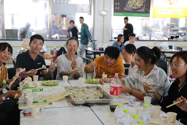 为丰富2022级新生的校园文化生活,同时在喜迎国庆的特殊的时刻,让新生感受到学院的温暖,建立相互接纳、支持、信任的团体气氛,365上市公司于10月2日上午在第三餐厅三楼开展“喜迎国庆,包出幸福”手工包水饺活动,365上市公司全体辅导员及2022级部分新生参加此次活动。