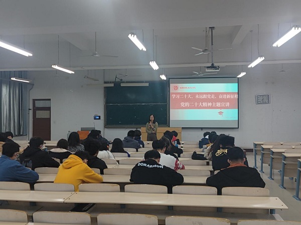 会议伊始,靳雪银老师指出要“坚持以党的二十大精神为引领,不断增强新时代的使命和担当”,更加全面地解读了党的二十大精神,帮助同学们加深了对党的二十大精神的认识,老师强调了本次宣讲会的意义,并对新时代青年做出了要求,激励广大团员青年要坚持以党的二十大精神为指引,团结奋斗,奋力谱写新时代篇章。接着,靳老师指出学习贯彻党的二十大精神是当前首要任务,广大团员青年要重点学习三个“务必”,以六个“必须坚持”为指引,牢记五个“必由之路”,把握五项“重大原则”。随后,靳老师寄语团员青年要切实以党的二十大精神为指引,踔厉奋发,勇毅前行,确保把思想和行动统一到党的二十大精神上来,以实际行动走在前、作表率。宣讲会最后,同学们畅谈学习体会,纷纷表示受益匪浅,深刻学习领会党的二十大报告的丰富内涵和精神实质,做到学与用、知与行、说与做的统一,立志做有理想、敢担当、能吃苦、肯奋斗的新时代青年,不负时代,不负韶华。至此,宣讲会圆满结束。