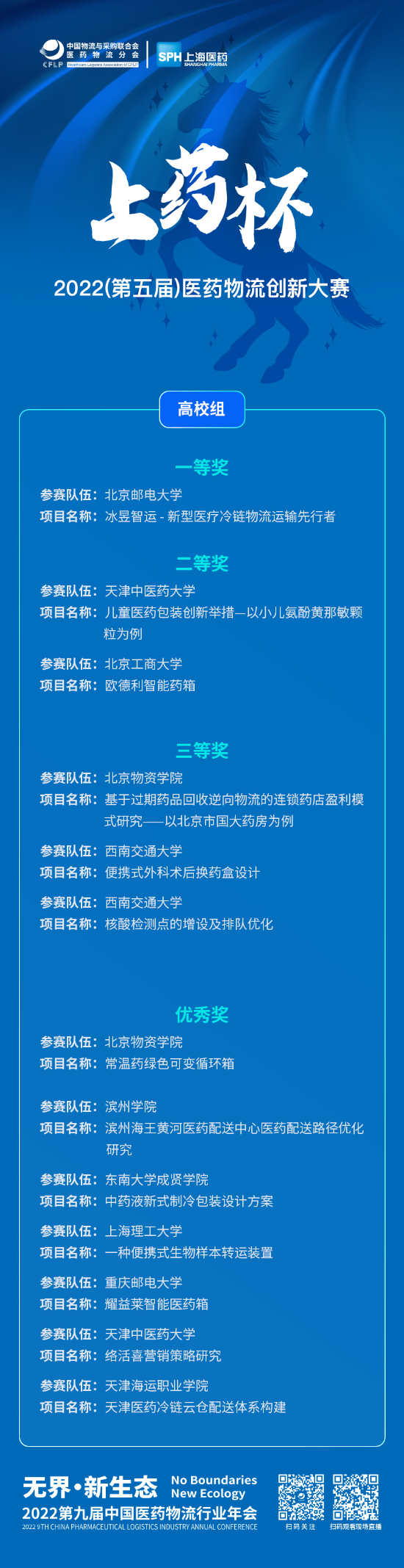 为深入贯彻落实《国务院办公厅关于积极推进供应链创新与应用的指导意见》(***〔2017〕84号)精神,培养医药物流行业人才严谨周密的思维方式、系统的思维能力和运营的全局观念,提升团队合作和供应链协同能力,促进产学研协同发展,推动医药物流行业人才培养工作。2022(第五届)“上药杯”医药物流创新大赛自7月启动征集,历时5个月申报,共计50余家企业、高校申报,征集60余份案例,经过大赛组委会的筛选、初评、打分。我院由张铭位、齐文秀、李梦范、王爱鹏、栾钰桐等五位同学组建参赛队伍开展了“海王黄河医药配送中心医药配送路径优化研究”,通过提交案例研究报告及路演答辩,成功入围全国13支决赛队伍并获得优秀奖。