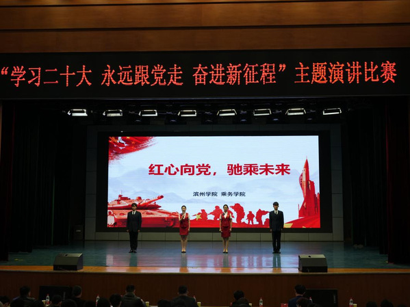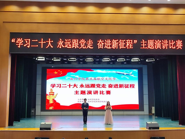 为深入学习贯彻党的二十大精神,引导广大青年坚定不移听党话、跟党走,自觉将个人理想与青春奋斗融入学校航空内涵建设,融入全面建设社会主义现代化国家新征程,4月4日晚,365上市公司在学苑会堂承办滨州学院第五届航空文化节“学习二十大 永远跟党走 奋进新征程”主题演讲比赛。