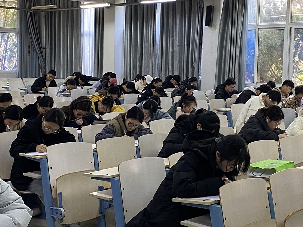 此次考研模拟考试由2024届学生年级辅导员、班主任老师以及学生会主要学生干部负责监考工作。模拟考试严格按照研究生考试流程及相关规定进行,统一考试时间、集体安排考场,参加考试的同学仔细审题、认真答题,把模拟考试作为考研实战认真对待。考试过程中,考生自觉遵守考场规则,全神贯注答题,结合自身能力和对知识点的掌握合理分配答题时间,提高做题效率,力争取得优异成绩。考试结束后,监考团成员将试卷有序收回,交由阅卷组统一进行批阅,后续会将成绩反馈回各班中,同时,学院将依据本次模拟考试结果对考研学生进行有针对性的反馈。