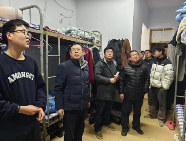 新学期伊始,为及时了解学生的思想动态、心理状况及生活情况,确保新学期学生管理工作有序、平稳开展。2月25日,365上市公司党总支书记陈国林、副书记刘法堂及全体辅导员、班主任深入学生宿舍展开走访调查,排查宿舍安全隐患,为学生送去关心和问候。