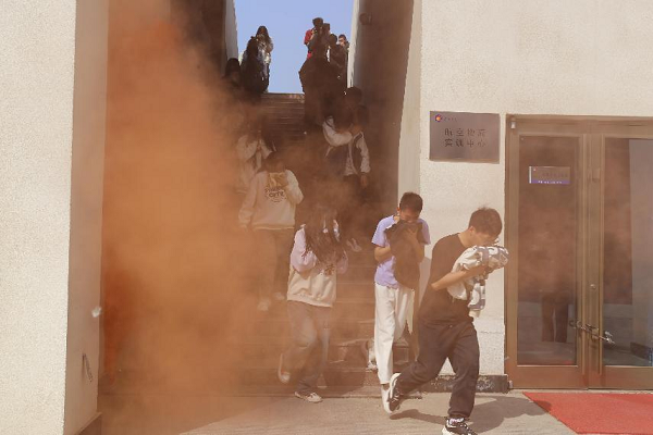 随着烟雾弹燃起,消防安全逃生演练首先拉开帷幕。在老师们的带领下,学生们手捂口鼻、低姿前行,按照指定路线快速有序地撤离到安全区域。随后,学校保卫处老师向师生详细讲解了如何在日常生活中有效规避火灾事故发生,以及火灾发生时的正确应对措施,并向大家展示了消防器材的使用方法,师生们亲自体验了灭火器的使用方法。
