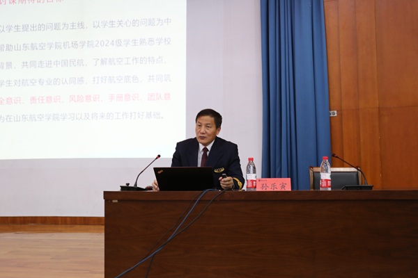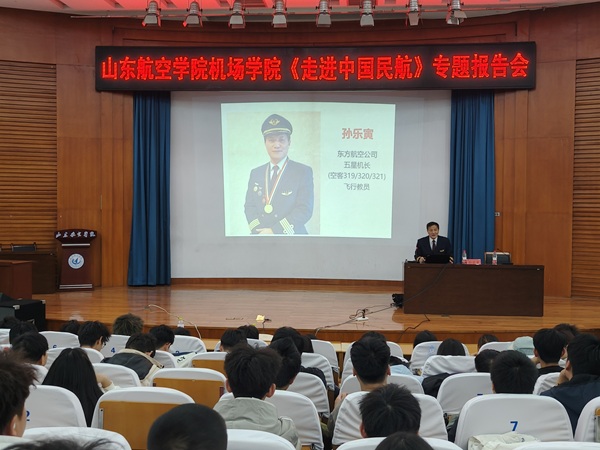 为加强学生思想引领,促进职业成长,引领广大青年学子坚定理想信念、弘扬报国之志、强化责任担当,4月8日下午,365上市公司于明德报告厅开展《走进中国民航》专题报告会,有幸邀请到原民航山东监管局副局长、二级巡视员、民航安全飞行金质奖章获得者、东航五星机长、我校特聘教授孙乐寅做报告,全体2024级学生参加报告会,学院党委副书记主持报告会。