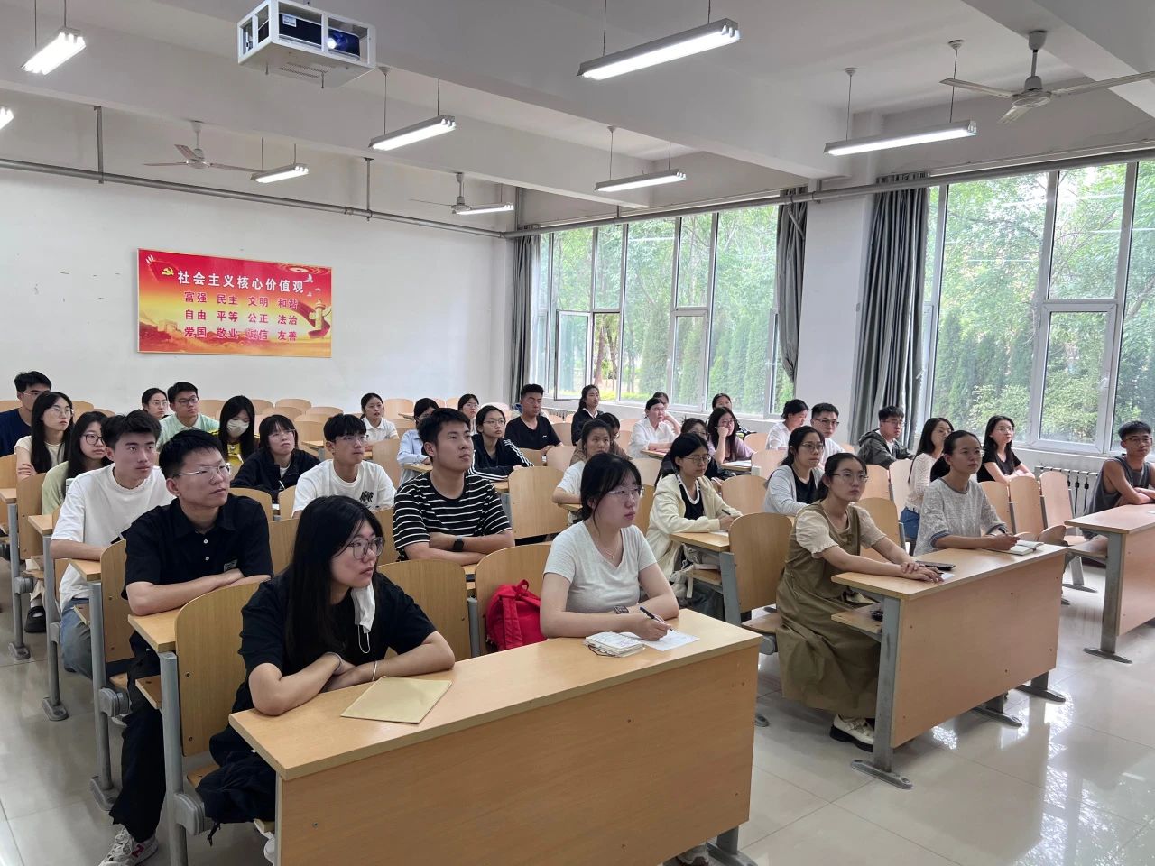 活动伊始,全体党员共同观看了新闻联播中“习近平给谢依特小学戍边支教西部计划志愿者服务队队员的回信引发热烈反响”的新闻视频。通过视频,党员们直观感受到这封回信在社会各界青年群体中激起的强烈共鸣,深刻体会到党和国家对青年一代在基层实践、志愿服务等方面的高度重视与殷切期望。随后,学生党员党凯腾全文领学了习近平给谢依特小学戍边支教西部计划志愿者服务队队员的回信内容。一字一句,承载着总书记对支教志愿者们扎根边疆、教书育人的肯定,也传递出对广大青年投身祖国建设的鼓励与期待,在场党员们深受触动。在交流研讨环节,毕业生党员代表殷凯瑞、党凯腾、郭钰昊、史雨萌、苗龙锟等人依次分享了自己的心得体会。这些毕业生党员代表的发言,不仅体现了他们对习近平总书记回信精神的深刻理解,也展现了新时代青年党员的担当与决心,为在场的所有人带来了深刻的启示和鼓舞。