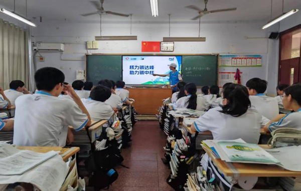 2025年7 月 12 日,一场别开生面的宣讲活动在诸城市龙城中学展开。宣讲人丁一赫重返母校,带来了以 “‘核’力碳达峰,助力碳中和” 为主题的 “两弹一星” 精神宣讲,为高中的学弟学妹们带来了全新的思考与启发。