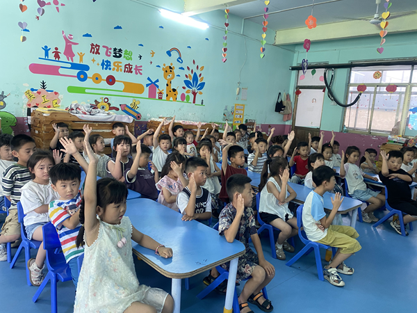 宣讲活动中,宣讲团成员刘峰峰以孩子们熟悉的“超级火箭”和“会转圈的小星星”为比喻,向孩子们介绍导弹和人造卫星的基本概念。通过形象生动的语言和互动提问,孩子们很快理解这些科学发明对国家的重要性。一位小朋友兴奋地说道:“原来火箭可以飞得那么高,还能保护我们的国家!”