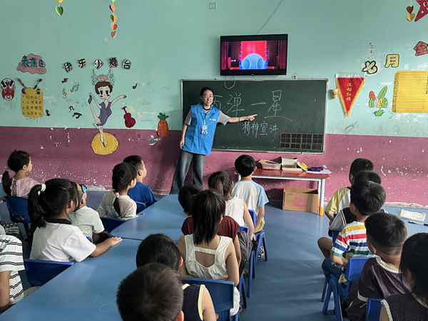 宣讲特别设计丰富多彩的互动环节。“找找火箭在哪里”的图片搜索游戏让孩子们在欢乐中认识了不同类型的火箭和卫星;简单易记的《科学家真伟大》儿歌通过朗朗上口的旋律,让孩子们记住了科学家的贡献;图片对比环节则直观展示“以前没有火箭时”和“现在有了以后”的国家面貌变化。一位小女孩指着对比图大声说:“有了火箭,我们的国家变得更厉害了!”