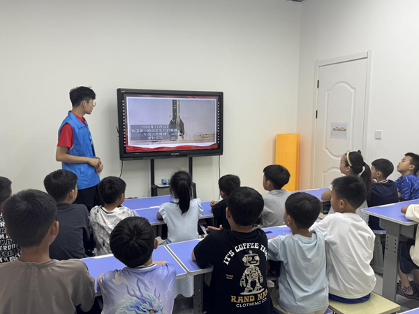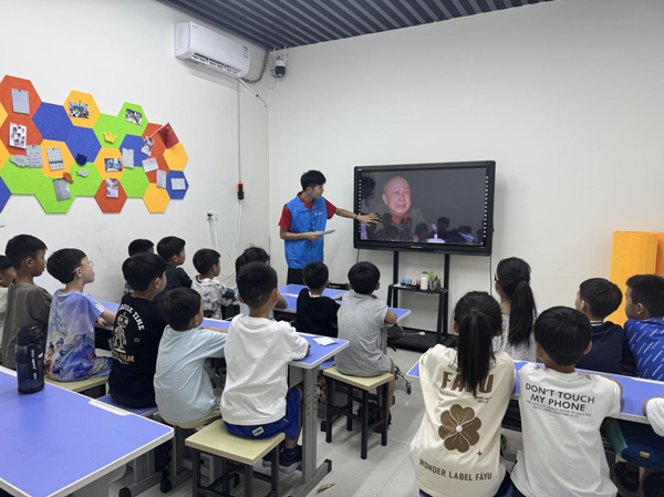 宣讲尾声,宣讲团成员寄语孩子们:“钱学森爷爷用一生告诉我们,爱国是最高的信仰,奋斗是最亮的底色。希望大家把今天的感动化为明天的行动,做心怀星空、脚踏实地的中国少年!”孩子们齐声回应:“要像钱爷爷那样,为祖国造火箭、卫和平!”稚嫩却铿锵的誓言在教室久久回荡。
