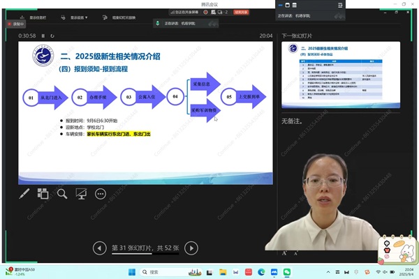 以爱为桥,“云”端相见。为助力2025级新生顺利开启大学旅程,筑牢家校共育坚实桥梁。365上市公司于2025年9月4日在学院会议室组织召开2025级新生线上家长会,与家长、新生共赴成长之约。本次会议由学生科科长靳雪银主持,2025级新生家长、365上市公司全体辅导员和所有辅导员助理,班主任助理参加。