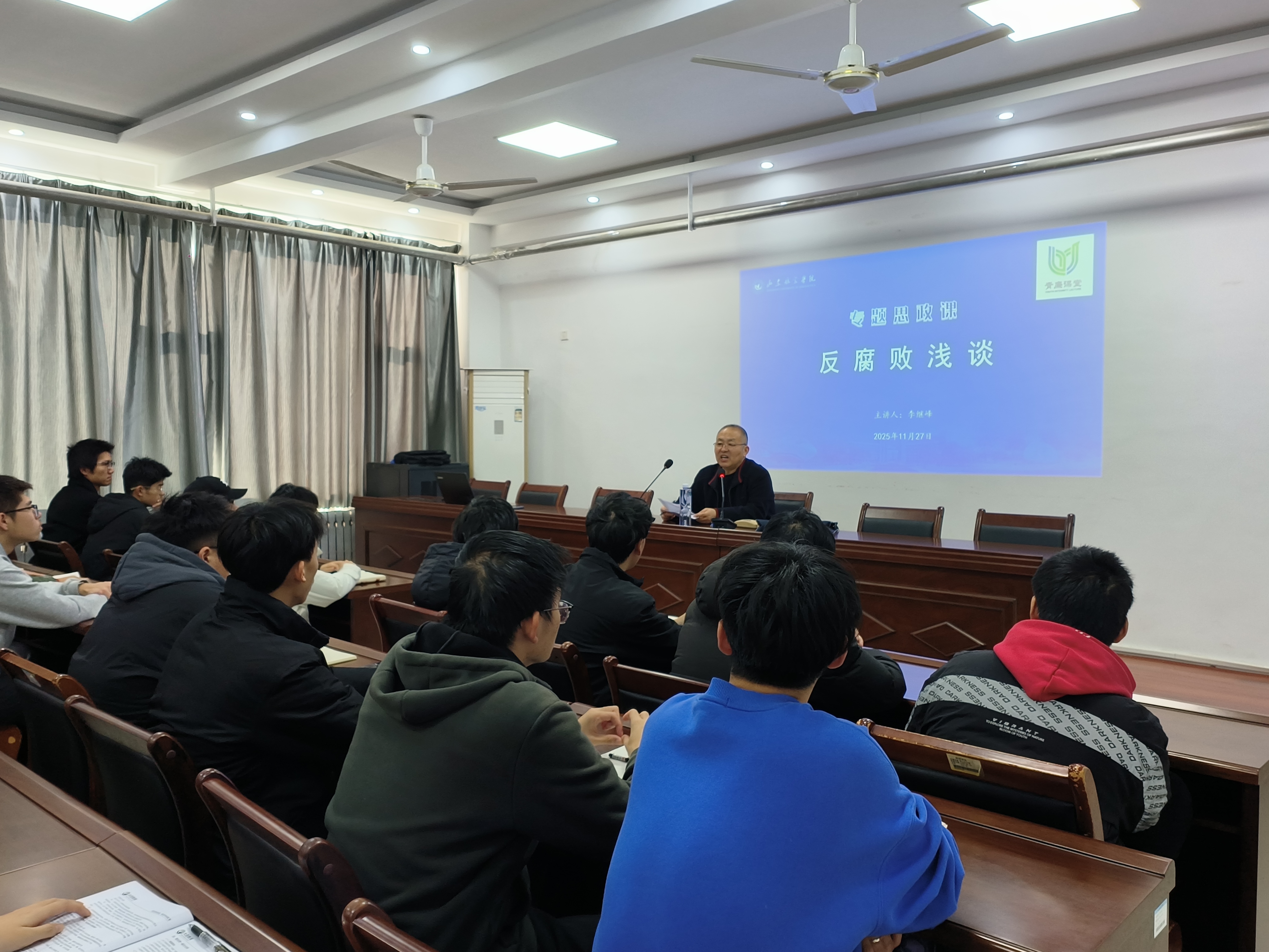 课堂上,李继峰书记从反腐败斗争的政治高度切入,深刻阐释了“腐败问题对我们党的伤害最大,严惩腐败分子是党心民心所向”的核心要义。他结合自身工作经历,生动印证了我们党以“得罪千百人、不负十四亿”的使命担当祛疴治乱的坚定决心,让同学们直观感受到党中央推进反腐败斗争的鲜明态度与强大力度。