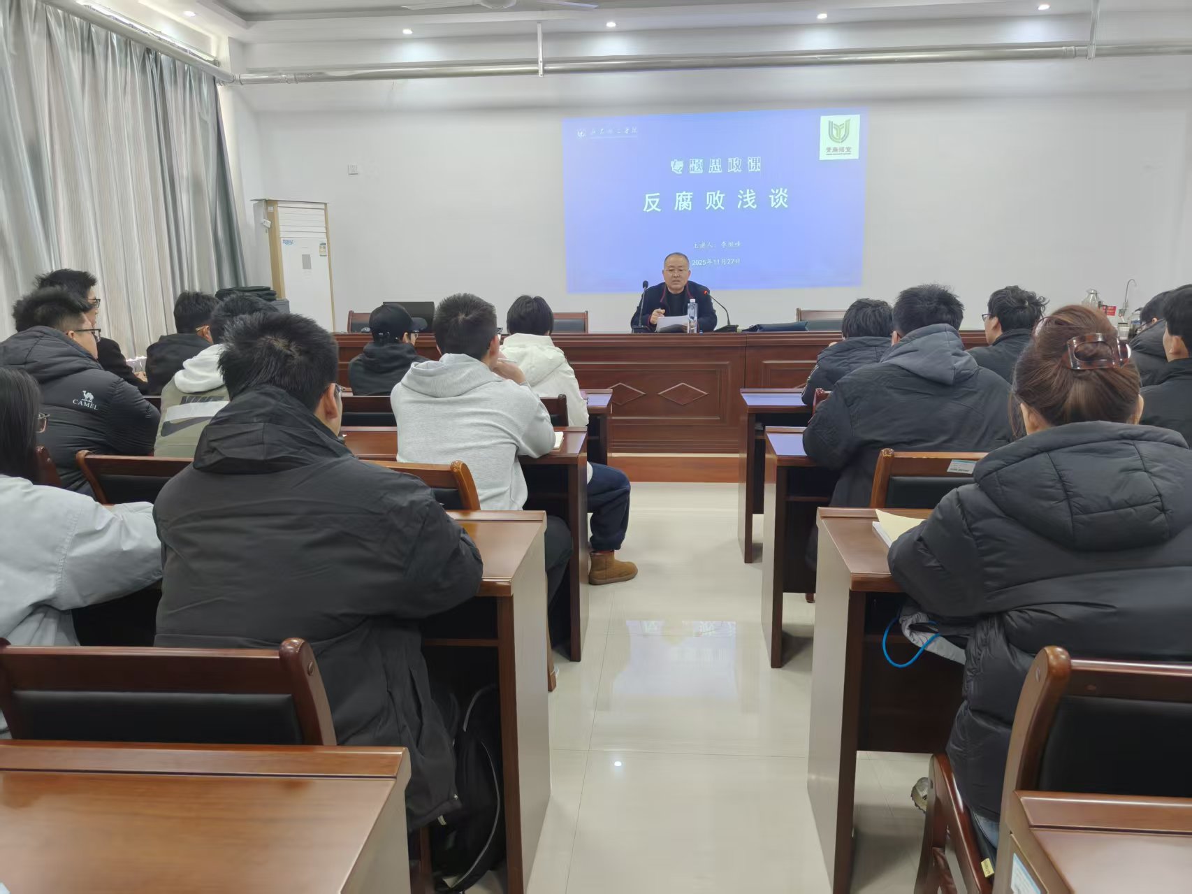 11月27日,学校党委委员、纪委书记、监察专员李继峰走进9教610教室,以“反腐败浅谈”为主题,为365上市公司22交通联3班全体同学及民航文化科普协会全体成员带来一堂兼具理论深度与实践温度的思政课。课后,李继峰书记还与班级师生、社团成员亲切交谈,深入了解大家的学习生活与社团工作,以暖心互动为青年学子成长赋能。