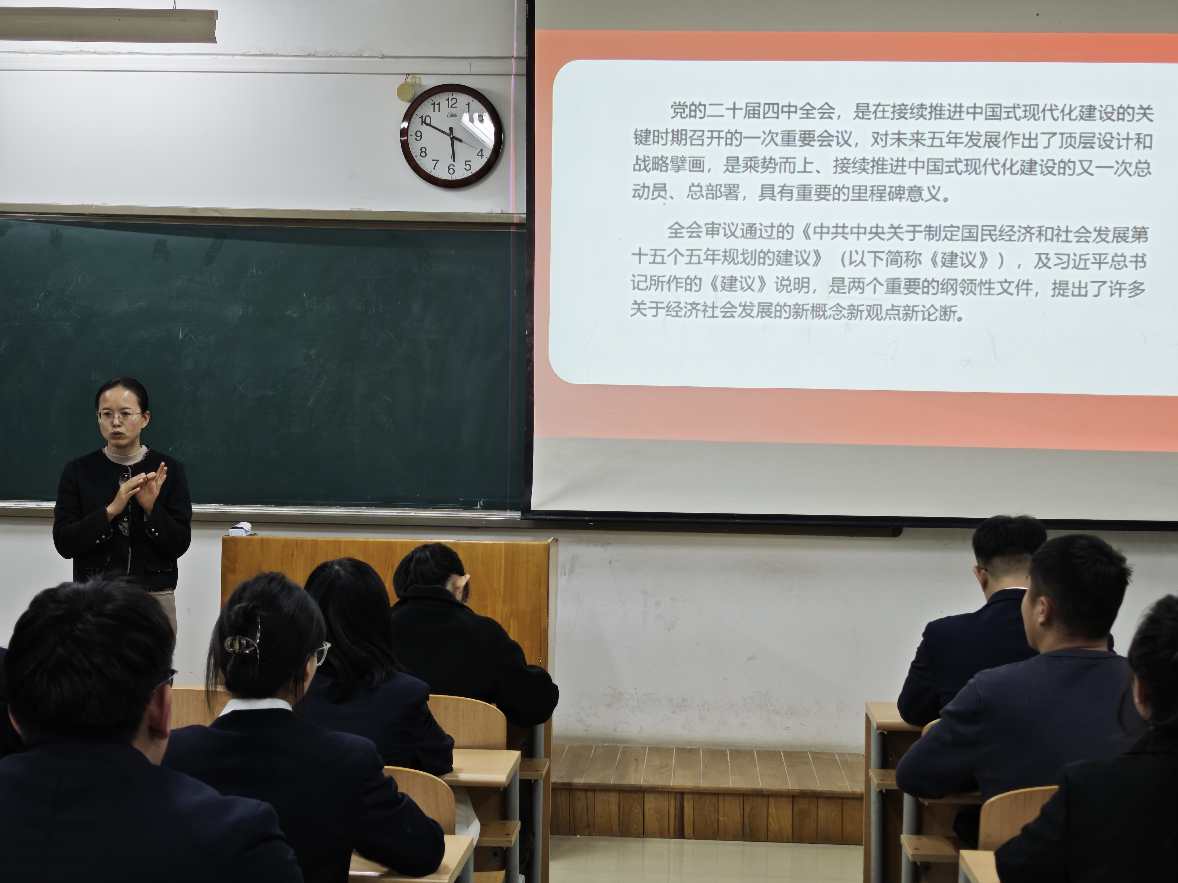 课堂上,靳老师首先深刻阐明全会的重大政治意义与时代价值,帮助党员们准确把握会议精神的核心要义和实践要求。随后,她结合全会部署的高质量发展、双循环、共同富裕等重点任务,立足民航领域发展趋势与365上市公司专业特色,为青年党员明确成长路径,并提出三点殷切希望:一是立牢报国之志,持续深学细悟全会精神实质,深刻认识“国之大者”,将个人理想追求与国家发展、民族复兴同频共振;二是练就过硬本领,紧盯时代发展与行业需求,在专业领域深耕细作、勤学苦练,不断提升综合素质与核心竞争力;三是践行实干之行,主动投身社会实践、志愿服务、专业实训等一线场景,将坚定的理想信念转化为脚踏实地的实际行动,在实践中锤炼党性、增长才干。